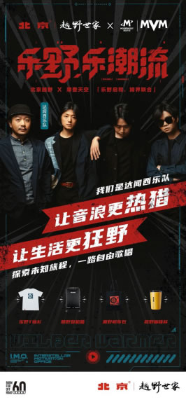 继中国潮流音乐台柱摩登天空与中国越野车第一品牌北京越野“官宣”组成“乐野联盟”后,联手推出的T恤、水杯、旅行箱等潮品尖货种草无数,旗下海龟先生、达达乐队、达闻 西乐队等人气先锋亦纷纷助阵,可谓是精彩不断。