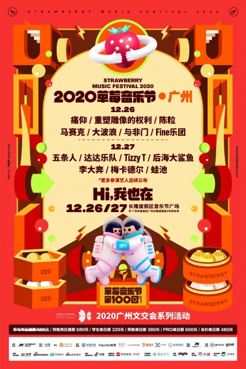 乐迷们翘首以盼的2020年广州草莓音乐节也即将到来:2020年12月26、27日,草莓音乐节将在长隆度假区音乐节广场上演,五条人、痛仰乐队、陈粒、Tizzy T、马赛克乐队、与非门乐队、后海大鲨鱼乐队、李大奔等将在长隆与粉丝们见面。