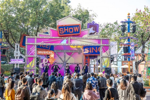 全新的K-POP地带舞台更是吸引了不少少男少女前来围观。这里有K-POP MV场景元素的拍照打卡装饰、梦幻少女粉的复古巴士、马卡龙色的沙滩椅、彩色街区场景、冬季节日灯饰等,随手一拍都能发朋友圈。值得一提的是,这里定时有青春男团女团的表演,他们为观众带来不同风格的热舞,极大限度点燃现场热情。